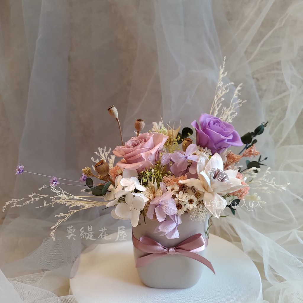 紫色系方型桌花 永生玫瑰 索拉花 居家擺設 花禮訂製 開幕花禮 情人節花禮 母親節花禮 蝦皮購物